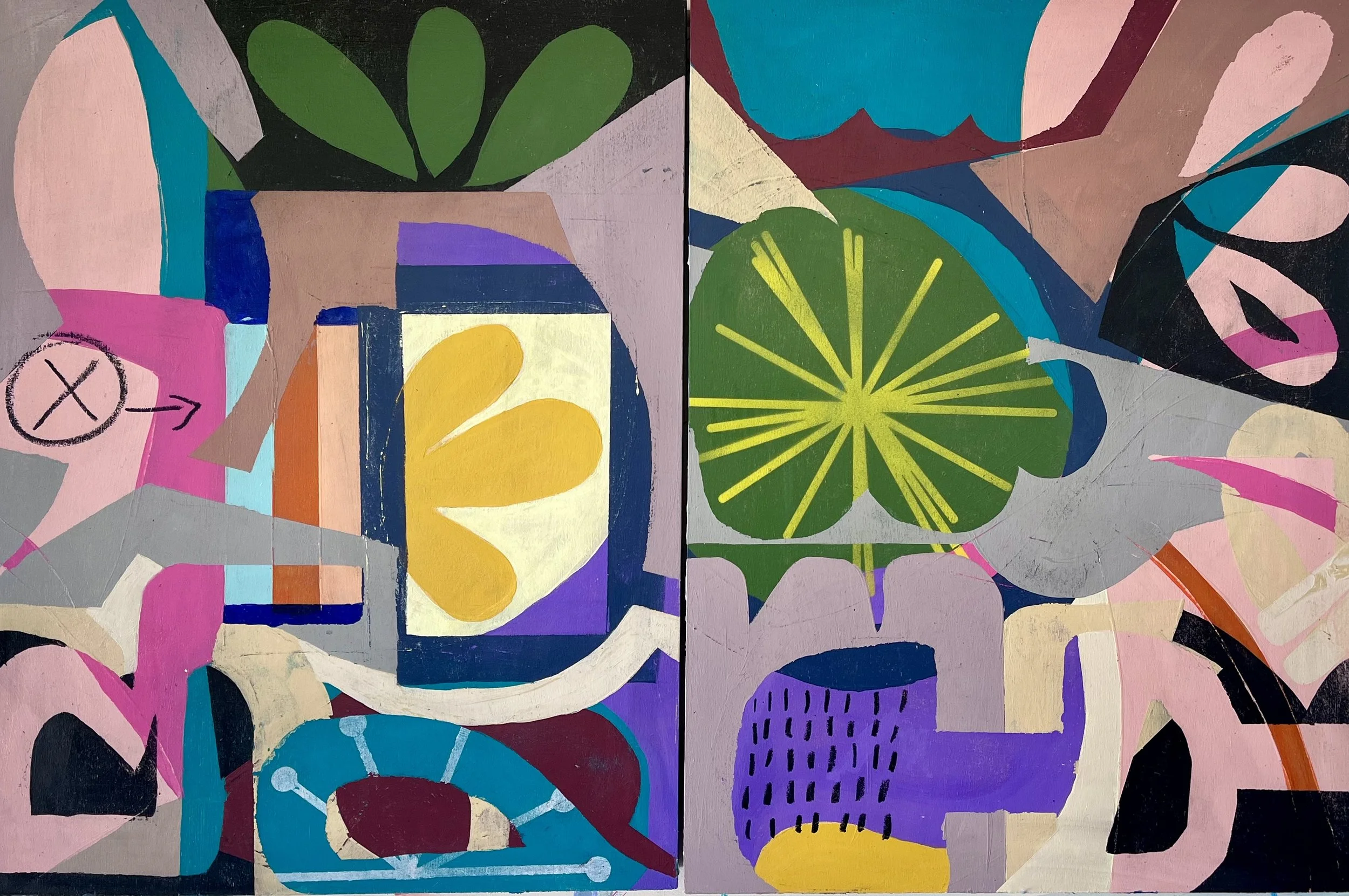 Underworld - Diptych - 24 x 48 - Acrylic on wood panels